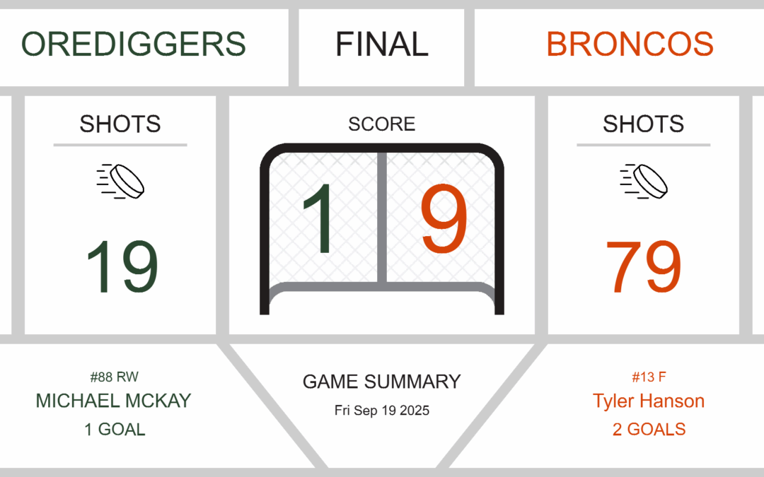 The Broncos dominated the game with a total of 79 shots, compared to the Orediggers’ 19. The Broncos’ powerplay was impressive, with a 5/16 success rate. Unfortunately, the Orediggers couldn’t match up, with their powerplay at 0/7.