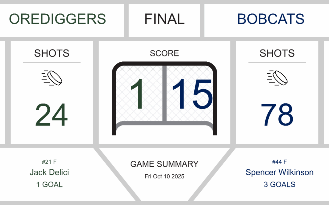 Bobcats’ goalie Richie Popson had a solid performance, facing 24 shots and making 23 saves. On the other side of the ice, Orediggers’ netminder Carson Burkart faced a barrage of shots, making 43 saves on 78 shots.